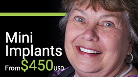 Mini dental implants in Mexico are a great option if you are not a candidate for normal implants. It is also a great option for our Snap-on Dentures treatment.